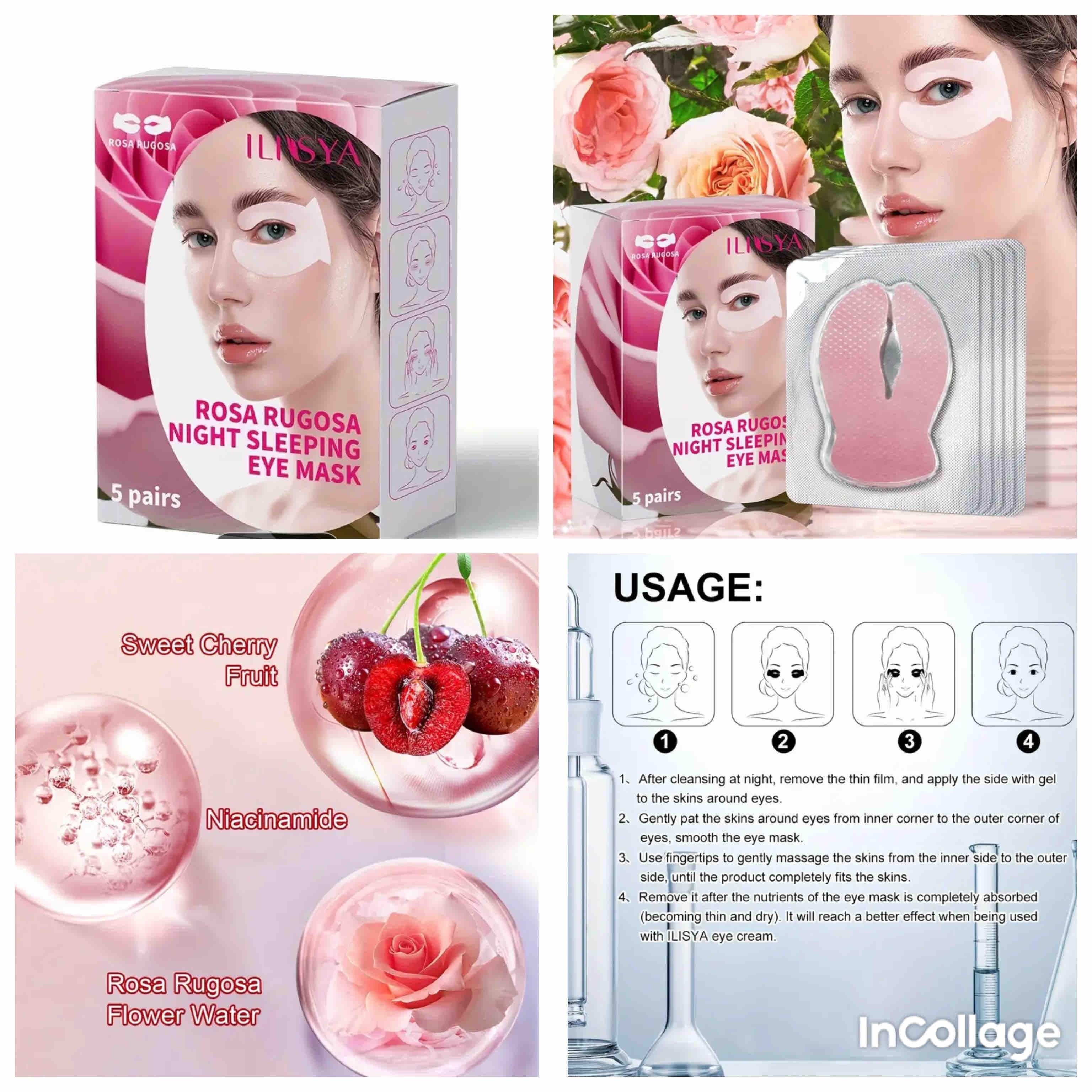 ILISYA Rosa Rugosa Maska do spania na noc - Niacynamid i esencja różana Nawilżające płatki pod oczy - Intensywnie nawilżająca kuracja przeciwzmarszczkowa - Długotrwała pielęgnacja wygładzająca skórę - Niezbędny w domu i podróży